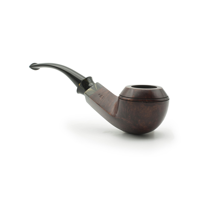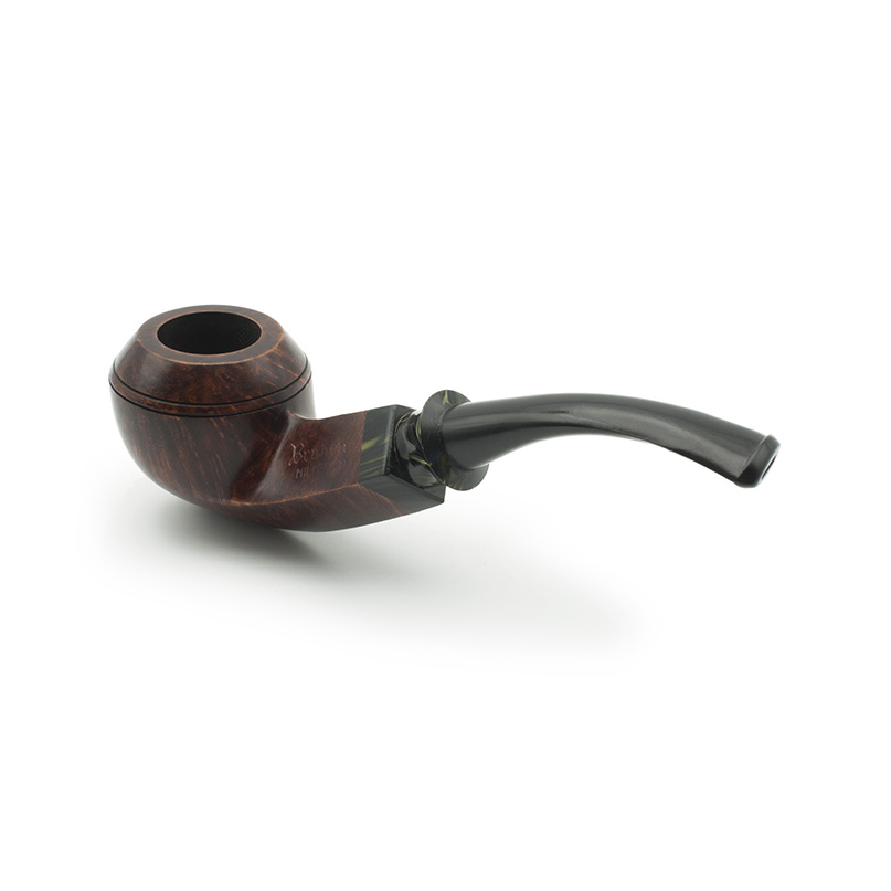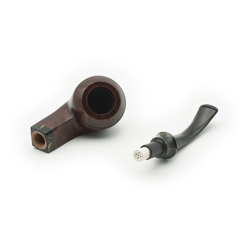 Pipa Bruken de la serie Millenium. Esta serie fue creada en el año 2000, se caracteriza por diseños clásicos y un ejemplo de artesanía Bruken, con una excelente calidad/precio. La boquilla está hecha a mano en ebonita y la corona en metacrilato de dos colores: marrón claro con aguas oscuras y verde con aguas de color oro. La cazoleta está adornada con un anillo de metacrilato del mismo color que la boquilla. El color marrón castaño de las pipas es el mismo para todos los modelos. Todas se fabrican sin filtro y con enfriador de aluminio.