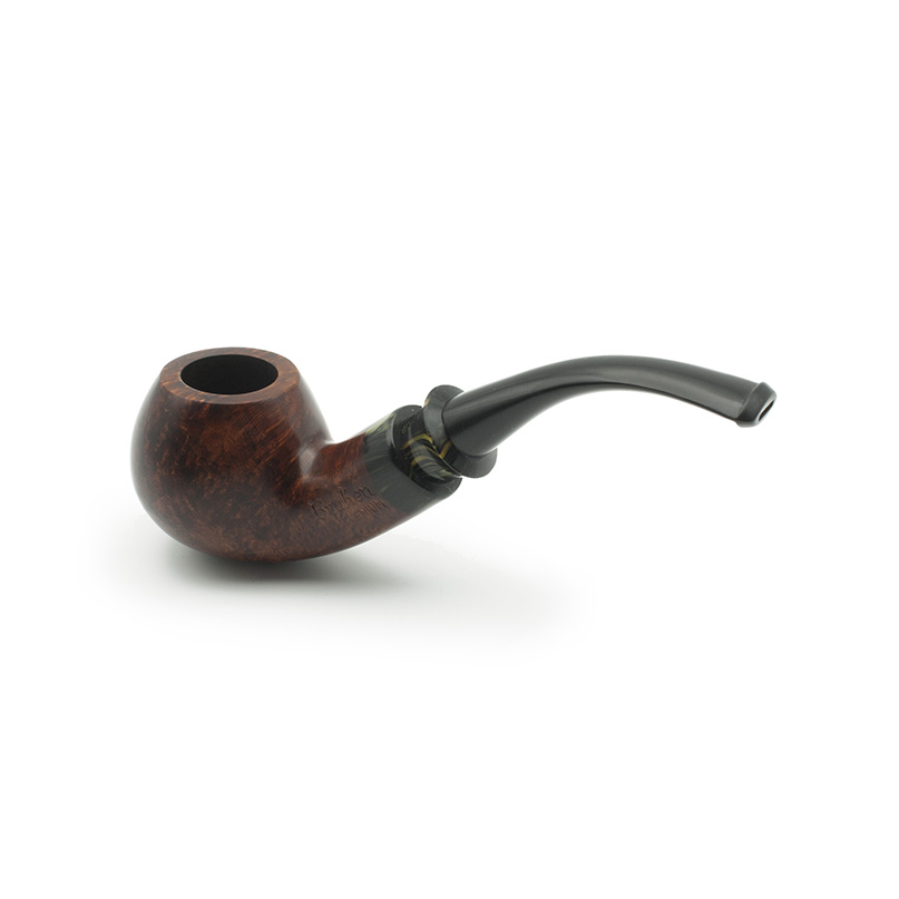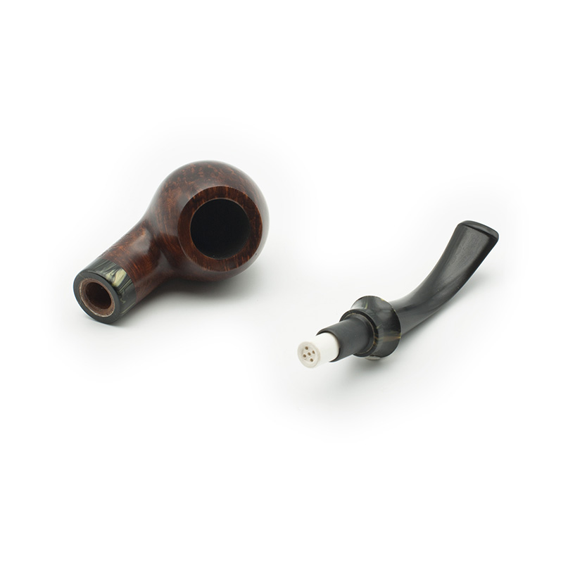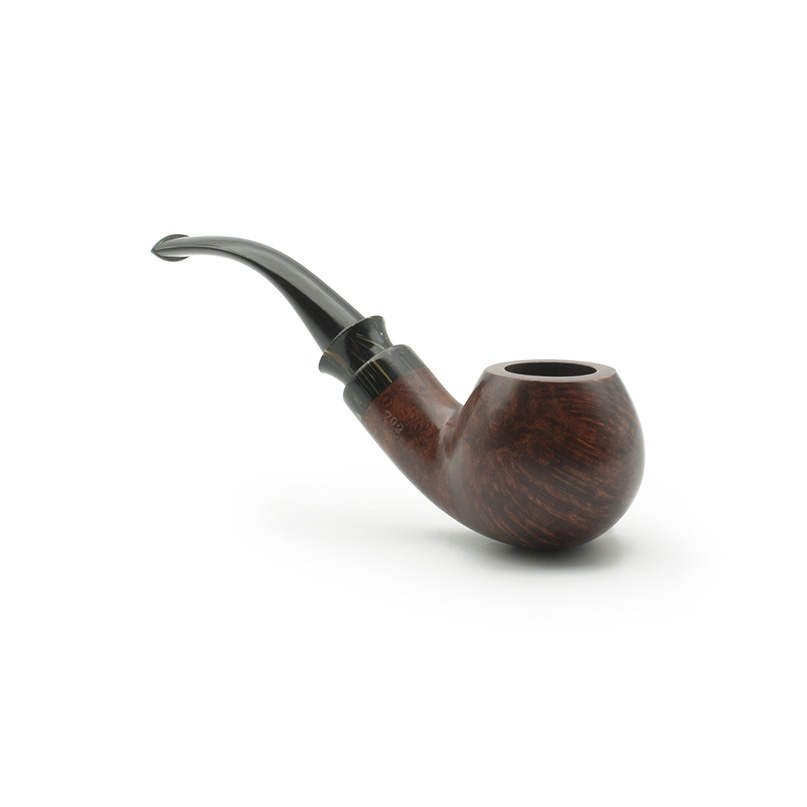 Pipa Bruken de la serie Millenium. Esta serie fue creada en el año 2000, se caracteriza por diseños clásicos y un ejemplo de artesanía Bruken, con una excelente calidad/precio. La boquilla está hecha a mano en ebonita y la corona en metacrilato de dos colores: marrón claro con aguas oscuras y verde con aguas de color oro. La cazoleta está adornada con un anillo de metacrilato del mismo color que la boquilla. El color marrón castaño de las pipas es el mismo para todos los modelos. Todas se fabrican sin filtro y con enfriador de aluminio.
