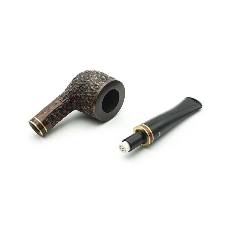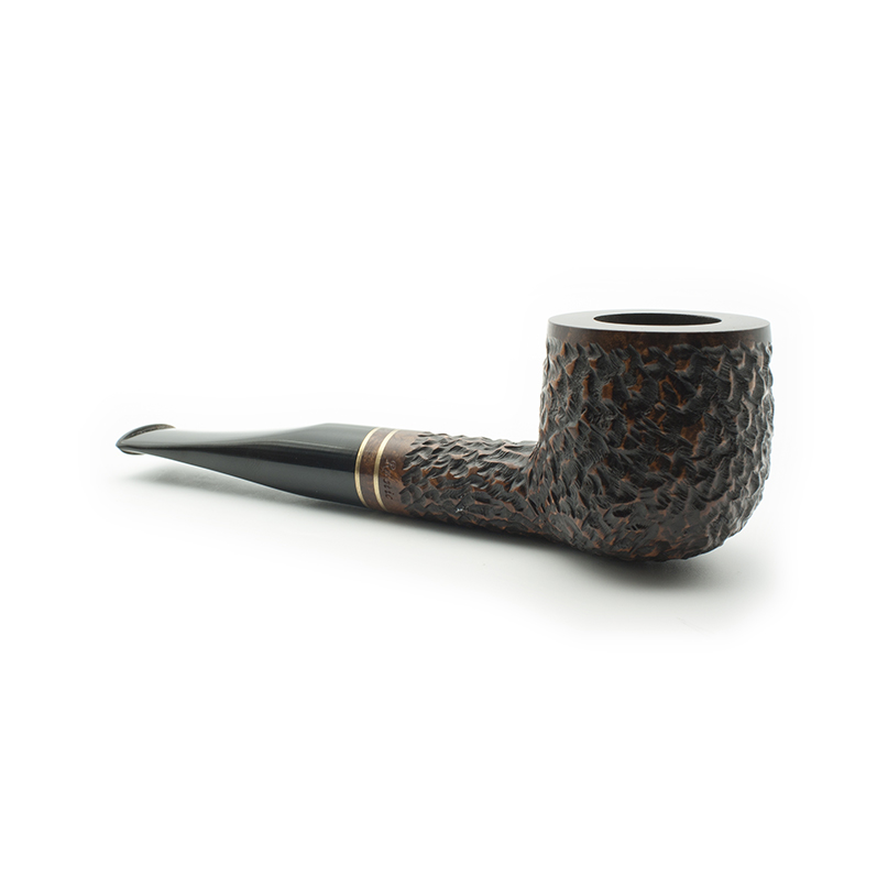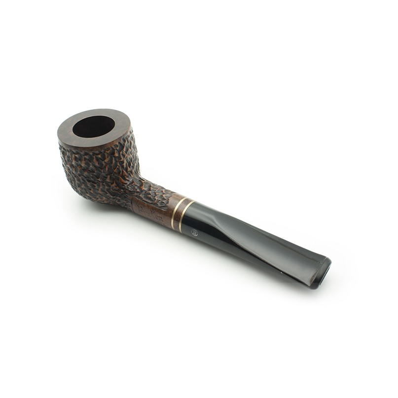 Pipa Bruken de la colección Arbórea, con acabado Rusticado. La colección Arbórea fue creada en 1984 por el artesano Emilio Navarro Prósper, y toma el nombre de la denominación científica del brezo (Erika Arbórea) de cuya raíz se obtiene la madera para la fabricación de nuestras pipas. Está formada por 9 modelos de pipas con diseño clásico y variado. Las pipas se caracterizan por estar adornadas con un doble anillo de latón y uno central de brezo. Se fabrica con un mínimo de capacidad de 3 g, filtro de 9 mm y sin filtro y con enfriador de aluminio según modelo. Cada modelo está disponible en 5 tipos de acabados: Rioja (Calidad Premium), Mediterráneo (Calidad Extra) Rustic, Cherry y Night (Calidad Standard).
