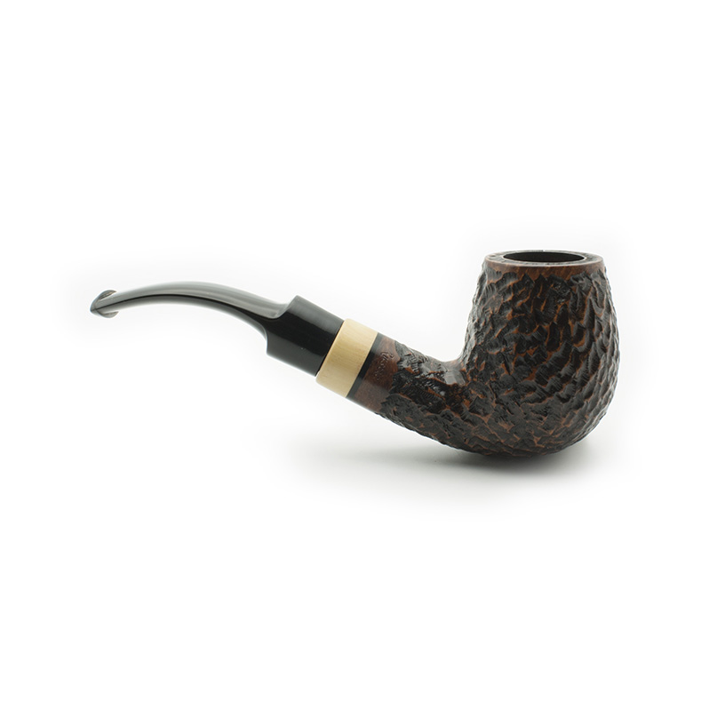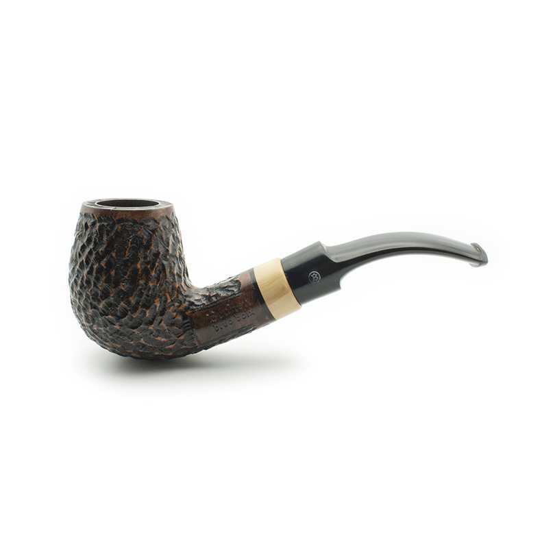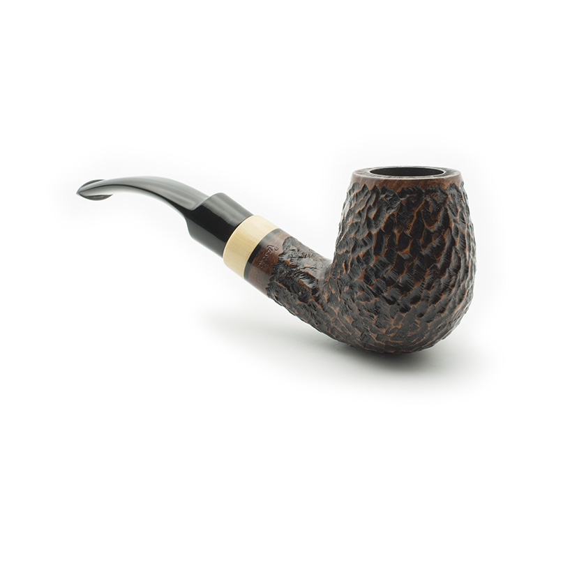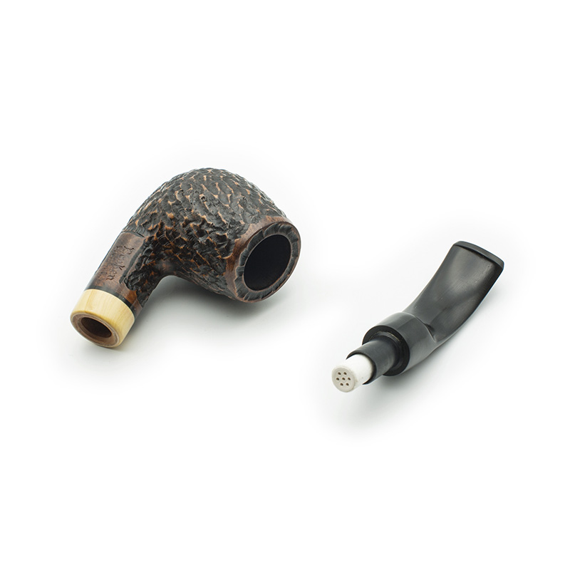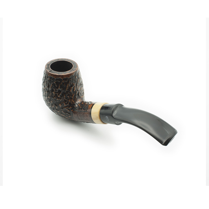 Pipa Bruken de la colección Bruc-Boix, con acabado Rusticada. La colección Bruc-Boix está formada por 9 modelos de pipas de madera de brezo, con un diseño exclusivo y variado. Las pipas de la colección Bruc-Boix se caracterizan por estar adornadas con un casquillo de boj (boix) y un pequeño anillo de metracrilato o en su caso de ébano. Se fabrica con un mínimo de capacidad de 3 gramos, con filtro de 9 mm y sin filtro, con enfriador de aluminio, según modelo. Cada modelo está disponible en 3 tipos de acabados: Rioja (G4), Mediterráneo (G3-G2) Rustic (G1).