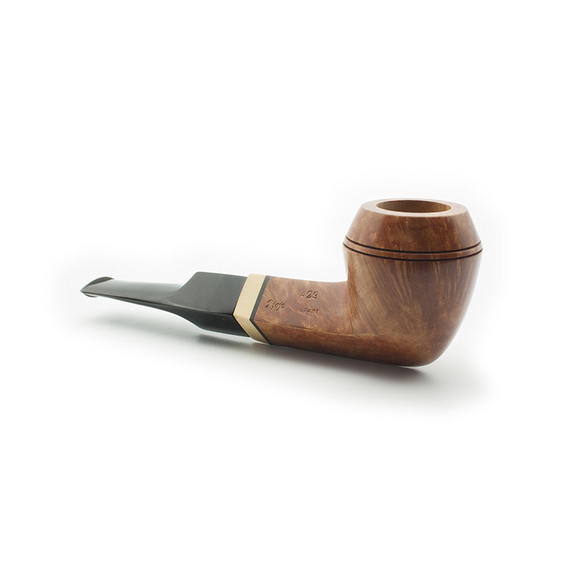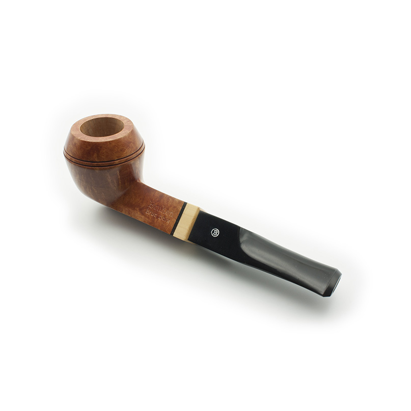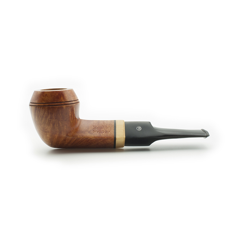 Pipa Bruken de la colección Bruc-Boix, con acabado Rioja. La colección Bruc-Boix está formada por 9 modelos de pipas de madera de brezo, con un diseño exclusivo y variado. Las pipas de la colección Bruc-Boix se caracterizan por estar adornadas con un casquillo de boj (boix) y un pequeño anillo de metracrilato o en su caso de ébano. Se fabrica con un mínimo de capacidad de 3 gramos, con filtro de 9 mm y sin filtro, con enfriador de aluminio, según modelo. Cada modelo está disponible en 3 tipos de acabados: Rioja (G4), Mediterráneo (G3-G2) Rustic (G1).