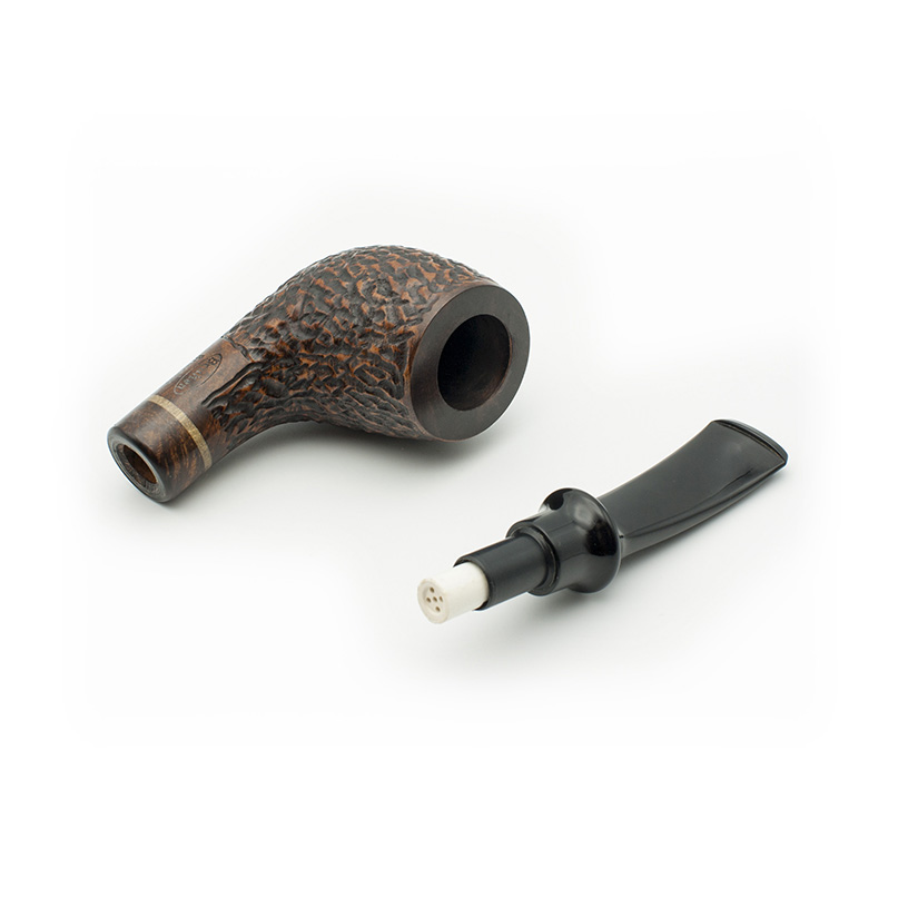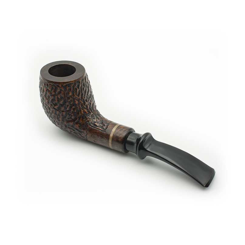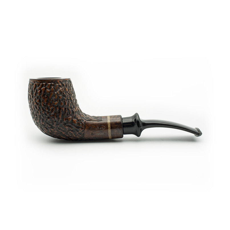 Pipa Bruken de la colección Bruselas, con acabado Rusticado. La colección Bruselas está formada por 6 modelos de pipas, con un diseño clásico y exclusivo. Realizadas con madera de raíz de brezo de alta calidad. Están adornadas con un anillo de madera de Boj incrustado en el caño de la cazoleta. La boquilla es de metacrilato con filtro de 9mm. Cada modelo está disponible en 4 tipos de acabados: Rioja (Calidad Premium), Mediterráneo (Calidad Extra) Cherry (Calidad Selecta) y Full Rustic (Calidad Standard).