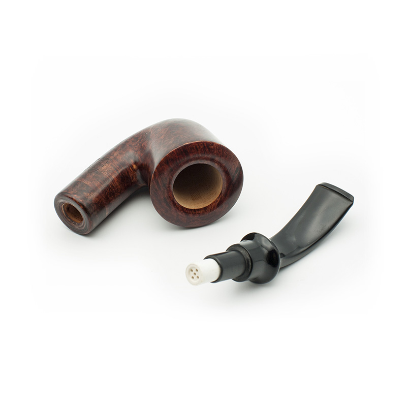 Pipa Bruken de la colección Bruselas, con acabado Cherry. La colección Bruselas está formada por 6 modelos de pipas, con un diseño clásico y exclusivo. Realizadas con madera de raíz de brezo de alta calidad. Están adornadas con un anillo de madera de Boj incrustado en el caño de la cazoleta. La boquilla es de metacrilato con filtro de 9mm. Cada modelo está disponible en 4 tipos de acabados: Rioja (Calidad Premium), Mediterráneo (Calidad Extra) Cherry (Calidad Selecta) y Full Rustic (Calidad Standard).