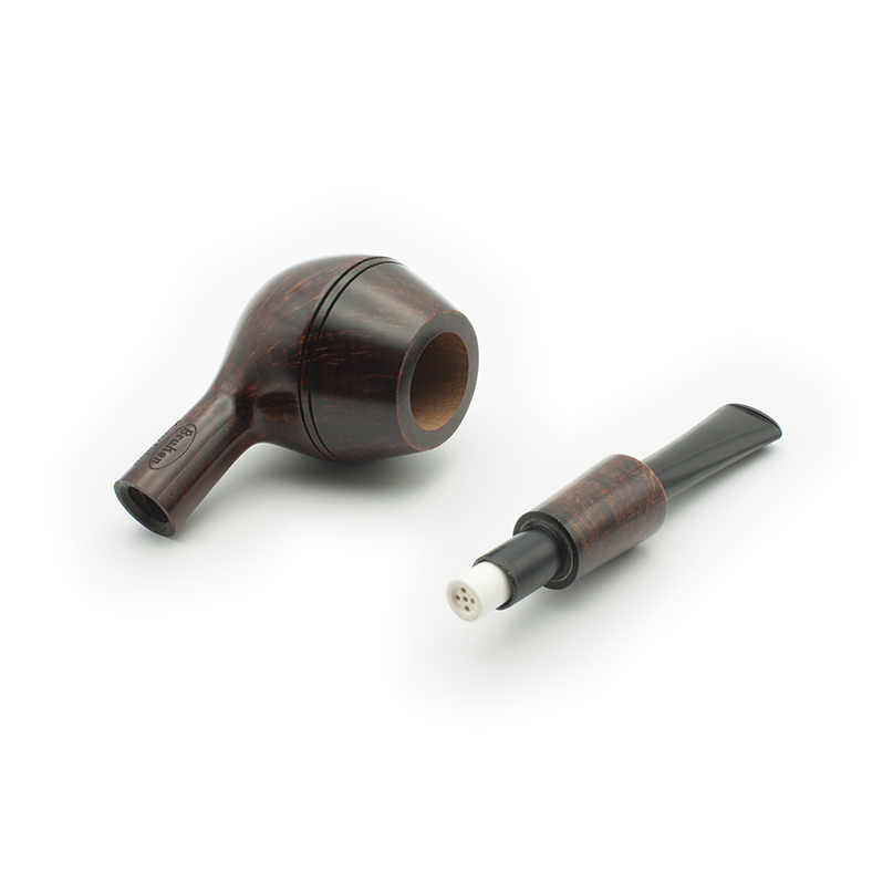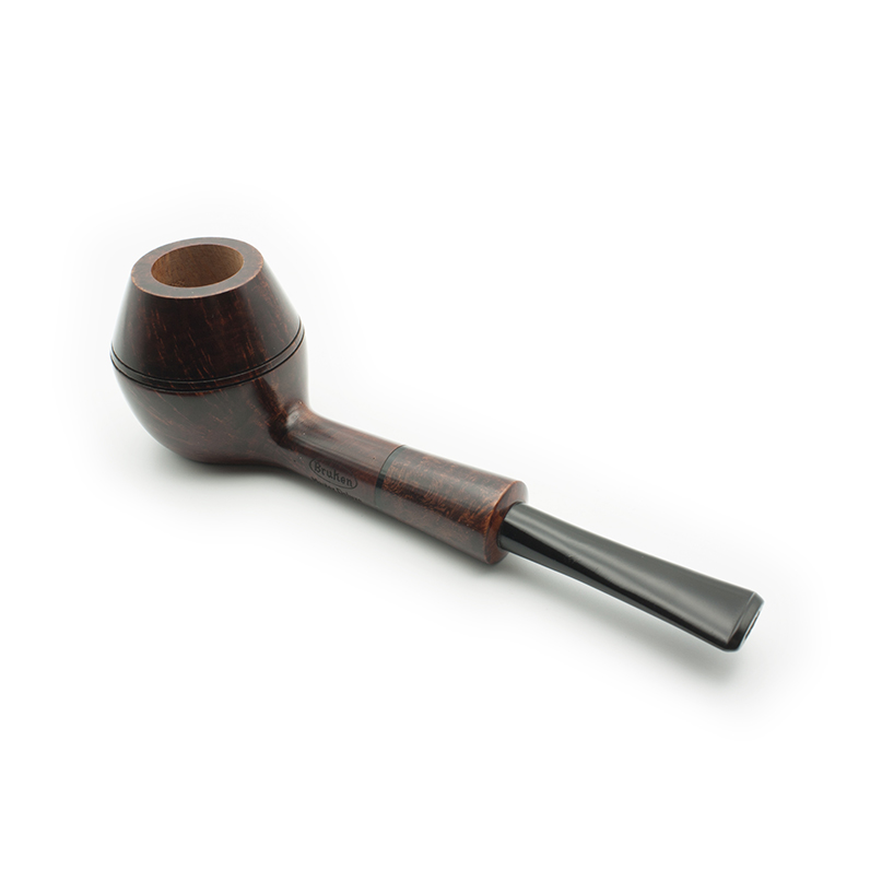 Pipa Bruken de la colección Master Deluxe, con acabado Cherry. La colección Master Deluxe está formada por 6 modelos de pipas, con un diseño exclusivo, uno de las colecciones más destacadas y artesanales de Bruken. Todos los modelos de pipa se fabrican sin filtro, con enfriador de aluminio y boquilla de metacrilato. Están adornadas con un anillo de metacrilato incrustado en el caño de la cazoleta. Cada modelo está disponible en 6 tipos de acabados: Straight Grain (Calidad Premium), Rioja (Calidad Premium), Mediterráneo (Calidad Extra) Cherry (Calidad Selecta), Full Rustic (Calidad Standard), Half Rustic (Calidad Standard), Night (Calidad Standard).