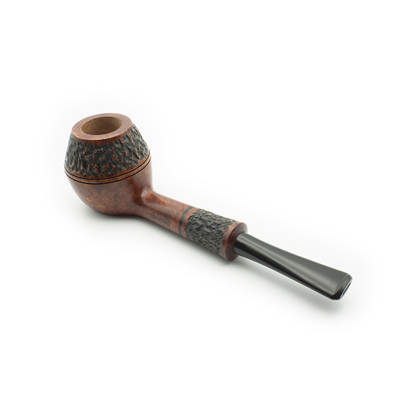 Pipa Bruken de la colección Master Deluxe, con acabado Halt Rustic. La colección Master Deluxe está formada por 6 modelos de pipas, con un diseño exclusivo, uno de las colecciones más destacadas y artesanales de Bruken. Todos los modelos de pipa se fabrican sin filtro, con enfriador de aluminio y boquilla de metacrilato. Están adornadas con un anillo de metacrilato incrustado en el caño de la cazoleta. Cada modelo está disponible en 6 tipos de acabados: Straight Grain (Calidad Premium), Rioja (Calidad Premium), Mediterráneo (Calidad Extra) Cherry (Calidad Selecta), Full Rustic (Calidad Standard), Half Rustic (Calidad Standard), Night (Calidad Standard).