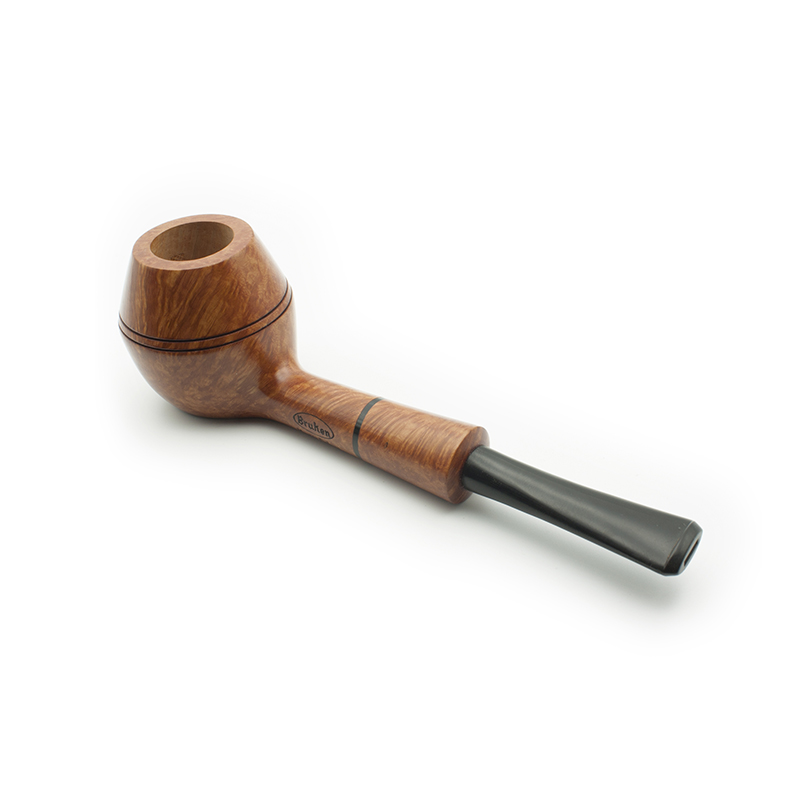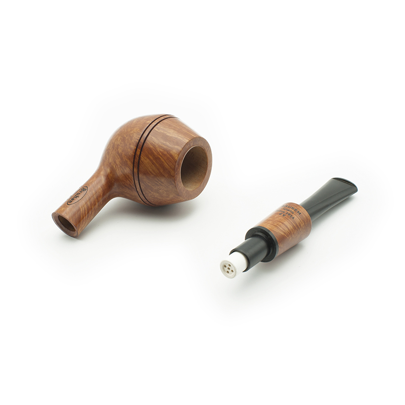 Pipa Bruken de la colección Master Deluxe, con acabado Rioja. La colección Master Deluxe está formada por 6 modelos de pipas, con un diseño exclusivo, uno de las colecciones más destacadas y artesanales de Bruken. Todos los modelos de pipa se fabrican sin filtro, con enfriador de aluminio y boquilla de metacrilato. Están adornadas con un anillo de metacrilato incrustado en el caño de la cazoleta. Cada modelo está disponible en 6 tipos de acabados: Straight Grain (Calidad Premium), Rioja (Calidad Premium), Mediterráneo (Calidad Extra) Cherry (Calidad Selecta), Full Rustic (Calidad Standard), Half Rustic (Calidad Standard), Night (Calidad Standard).