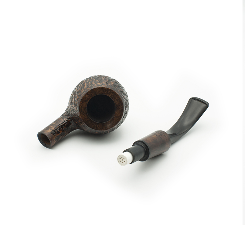 Pipa Bruken de la colección Master Deluxe, con acabado Rusticado. La colección Master Deluxe está formada por 6 modelos de pipas, con un diseño exclusivo, uno de las colecciones más destacadas y artesanales de Bruken. Todos los modelos de pipa se fabrican sin filtro, con enfriador de aluminio y boquilla de metacrilato. Están adornadas con un anillo de metacrilato incrustado en el caño de la cazoleta. Cada modelo está disponible en 6 tipos de acabados: Straight Grain (Calidad Premium), Rioja (Calidad Premium), Mediterráneo (Calidad Extra) Cherry (Calidad Selecta), Full Rustic (Calidad Standard), Half Rustic (Calidad Standard), Night (Calidad Standard).