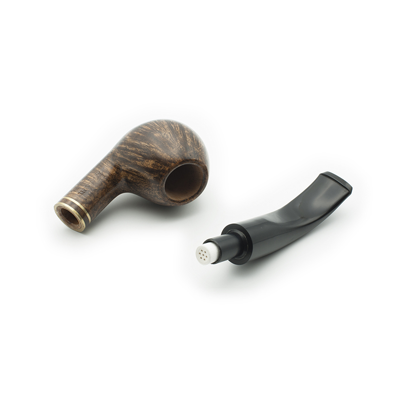 Pipa Bruken de la colección Arbórea, con acabado Mediterráneo. La colección Arbórea fue creada en 1984 por el artesano Emilio Navarro Prósper, y toma el nombre de la denominación científica del brezo (Erika Arbórea) de cuya raíz se obtiene la madera para la fabricación de nuestras pipas. Está formada por 9 modelos de pipas con diseño clásico y variado. Las pipas se caracterizan por estar adornadas con un doble anillo de latón y uno central de brezo. Se fabrica con un mínimo de capacidad de 3 g, filtro de 9 mm y sin filtro y con enfriador de aluminio según modelo. Cada modelo está disponible en 5 tipos de acabados: Rioja (Calidad Premium), Mediterráneo (Calidad Extra) Rustic, Cherry y Night (Calidad Standard).